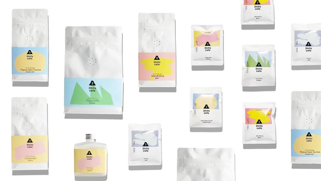 設(shè)計師借由山丘的自然意象,改用數(shù)字“3”,提升傳播性和識別性,同時植入品牌概念:探索咖啡自然風(fēng)貌,探索咖啡可能性。